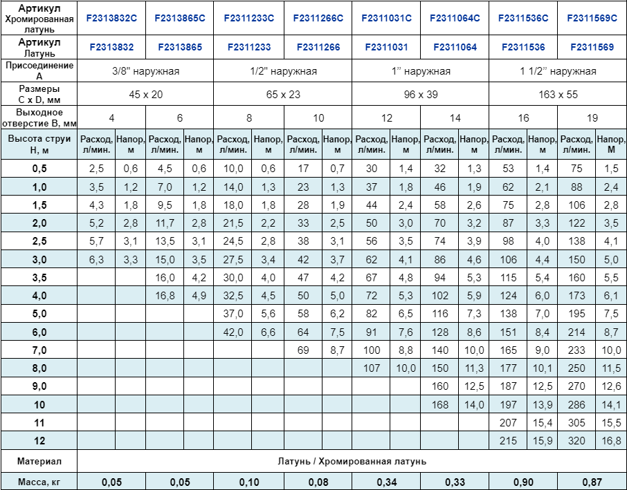 Высота струи max, м